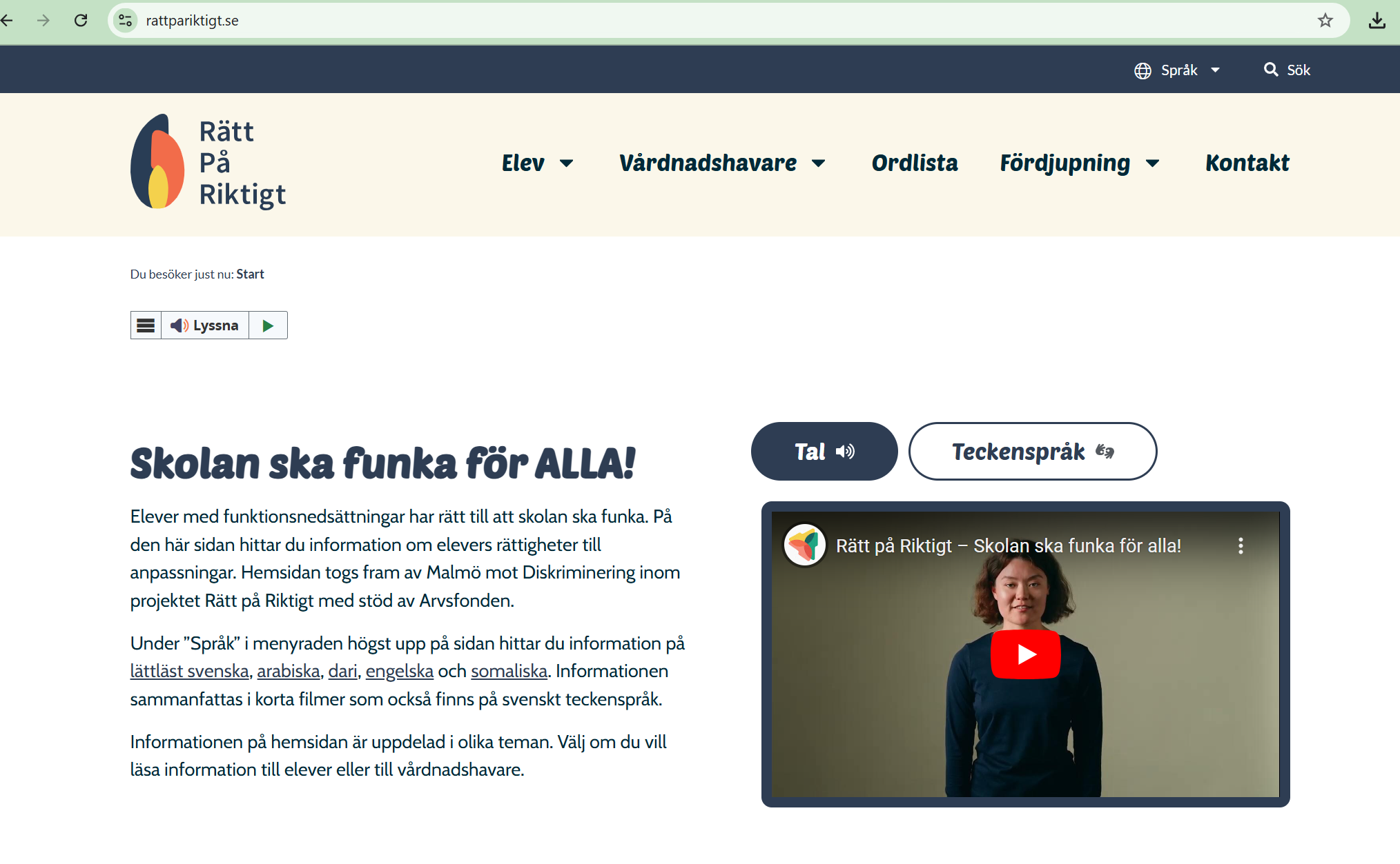 Elever med funktionsnedsättningar har rätt till att skolan ska funka. På den här sidan hittar du information om elevers rättigheter till anpassningar. Hemsidan togs fram av Malmö mot Diskriminering inom projektet Rätt på Riktigt med stöd av Arvsfonden.